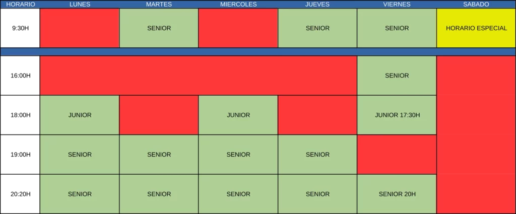 HORARIO DE CLASES DE BOXEO
